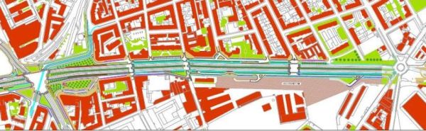 Il progetto adesso cantierizzato prevede il raccordo con corso Venezia attualmente diviso in più tronconi dall’ex trincea ferroviaria e l’abbattimento del ponte di via Stradella.