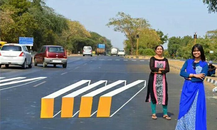 Dall’altro lato del mondo, nel marzo di quest’anno, due artiste indiane hanno realizzato nella città di Ahmeddabad degli attraversamenti pedonali con un suggestivo effetto 3D, anche in questo caso, col fine ultimo di rendere più sicure le strisce pedonali. Sebbene con limitazioni imposte per via delle stringenti norme stradali, le autorità hanno tuttavia testato gli effetti positivi di queste strisce pedonali artistiche e le hanno approvate.