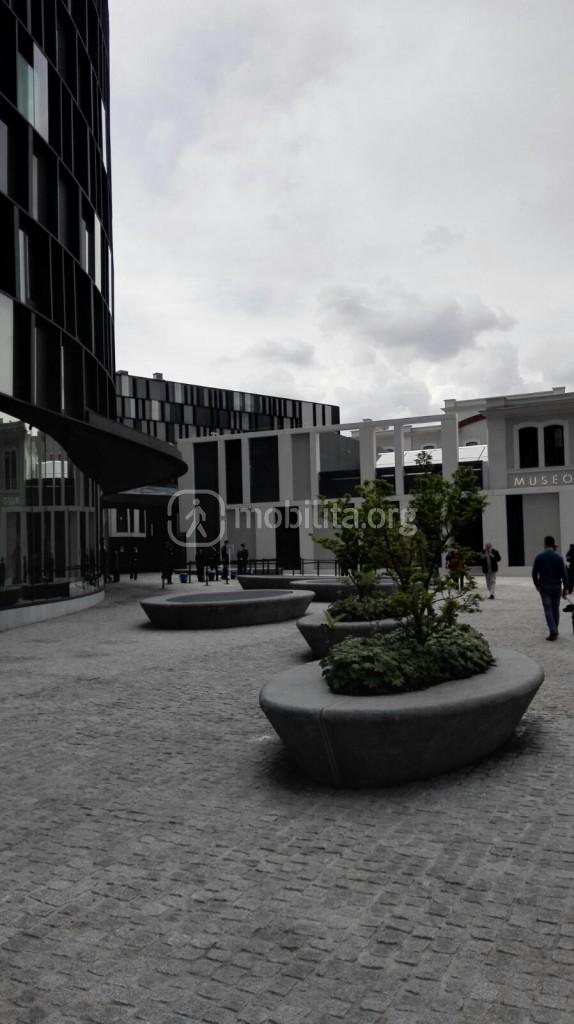 30.000 mq di spazi a cui corrispondono 15.000 mq di nuova costruzione e 7.000. mq di piazza alberata, di fatti un grande giardino urbano.