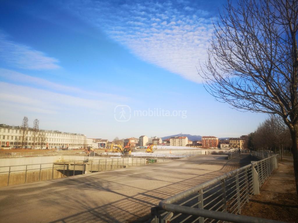 In particolare su corso Mortara è stato creato un nuovo marciapiedi e demolita gran parte della recinzione. L’ingresso principale avverrà proprio da qui, in asse con il percorso pedonale che passerà dal ponte-pensile sulla Dora.