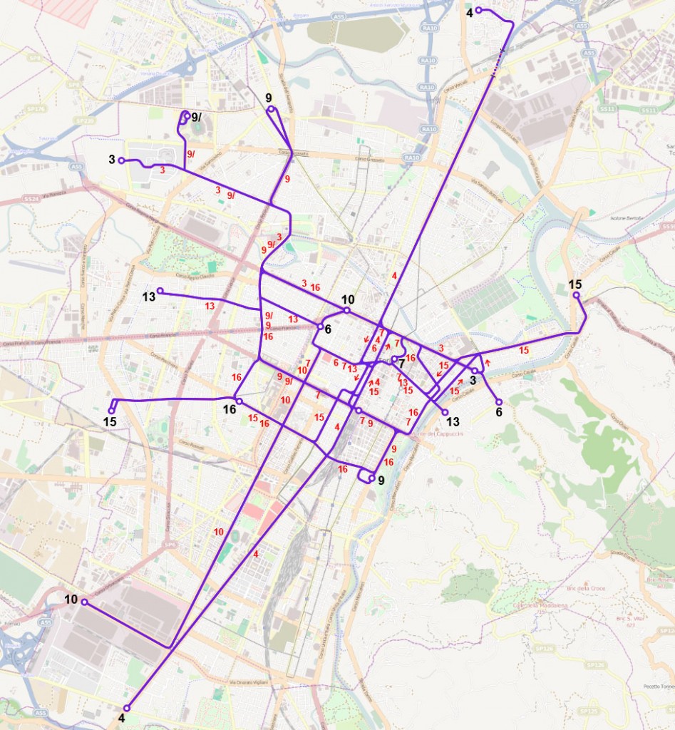 16 linea circolare attorno il centro storico con capolinea a Piazza Sabotino